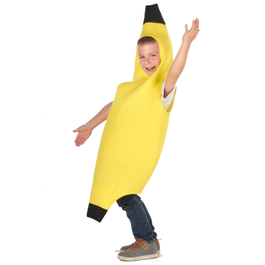 À l'occasion d'une fête sur le thème fruit ou légumes, ce déguisement de banane pour filles et garçons sera parfait.