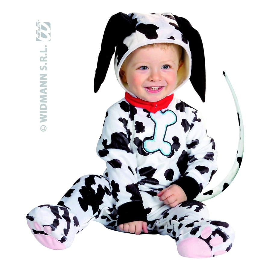 Pour enfant de 3 ans. Une combinaison et d'une coiffe de dalmatien blanches, noires et roses. La taille de la combinaison est de 90 centimètres avec entre-jambe ouvrable. Cet ensemble transformera votre enfant en superbe petit dalmatien.