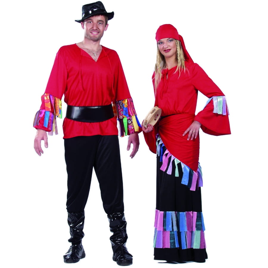 Vous aurez une fière allure dans ce déguisement de bohémien. Vous serez le meneur de votre troupe dans ce déguisement ou encore si vous incarnez un gitan. En multicolore ce déguisement de carnaval existe en taille 45/, 50,52 et 54. Il est composé d'une tunique rouge de longues manches avec des rubans multicolores, une ceinture noir, de surbotte noires et d'un chapeau noir.