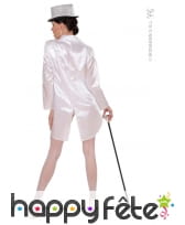 Le haut est de couleur orange et présente de courtes manches découpées en pointe aux extrémités.