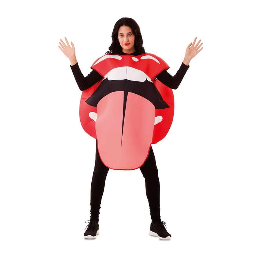 Le déguisement présente une émoticône la bouche grande ouverte et la langue bien tirée.
