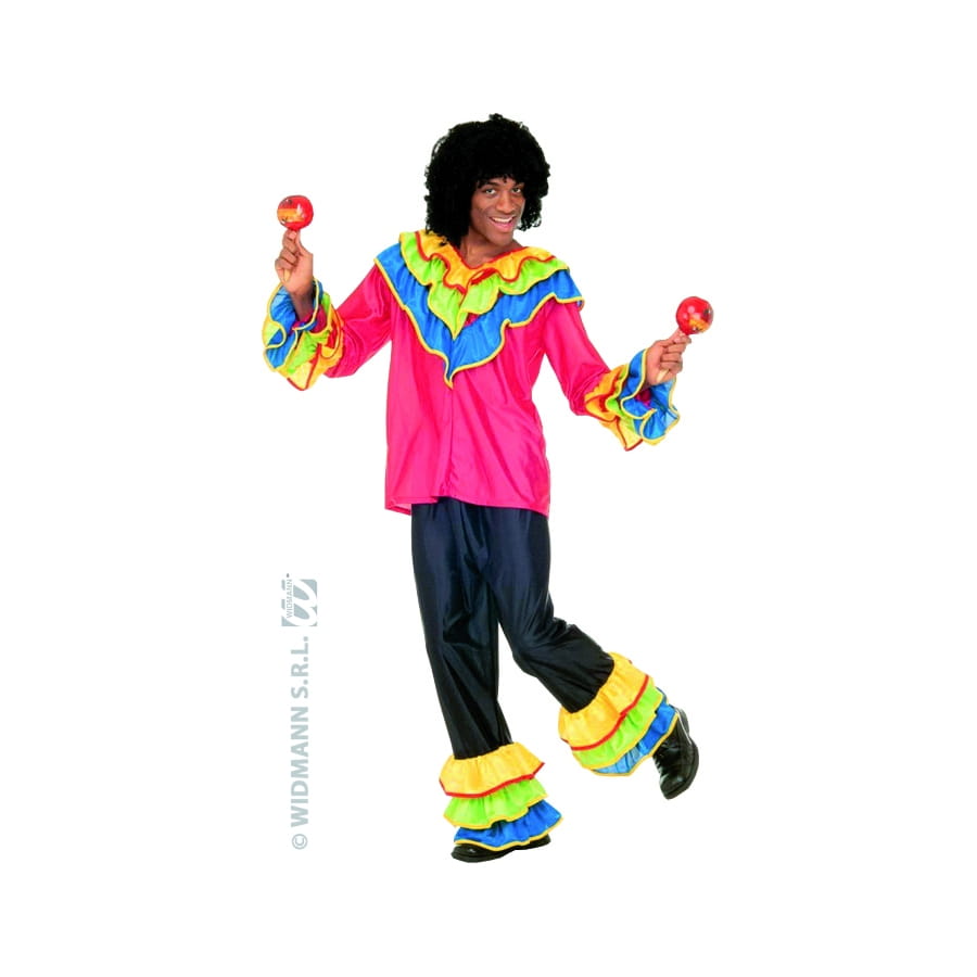 Amusez-vous, laissez-vous tenter par ce set : pantalon et chemise. Cet ensemble bleu, jaune, noir, rouge et vert est disponible en taille L ou M. Il est parfait pour une soirée brésilienne.