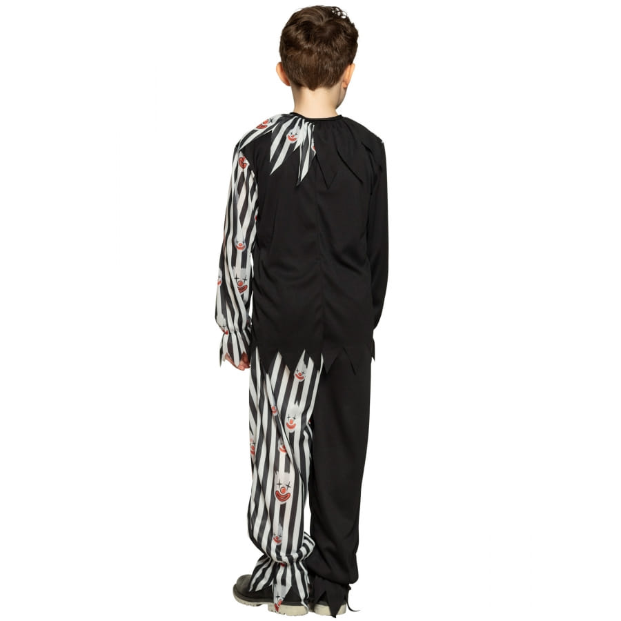 Le costume de clown sinistre tâché de sang pour enfant est un ensemble de 2 pièces.