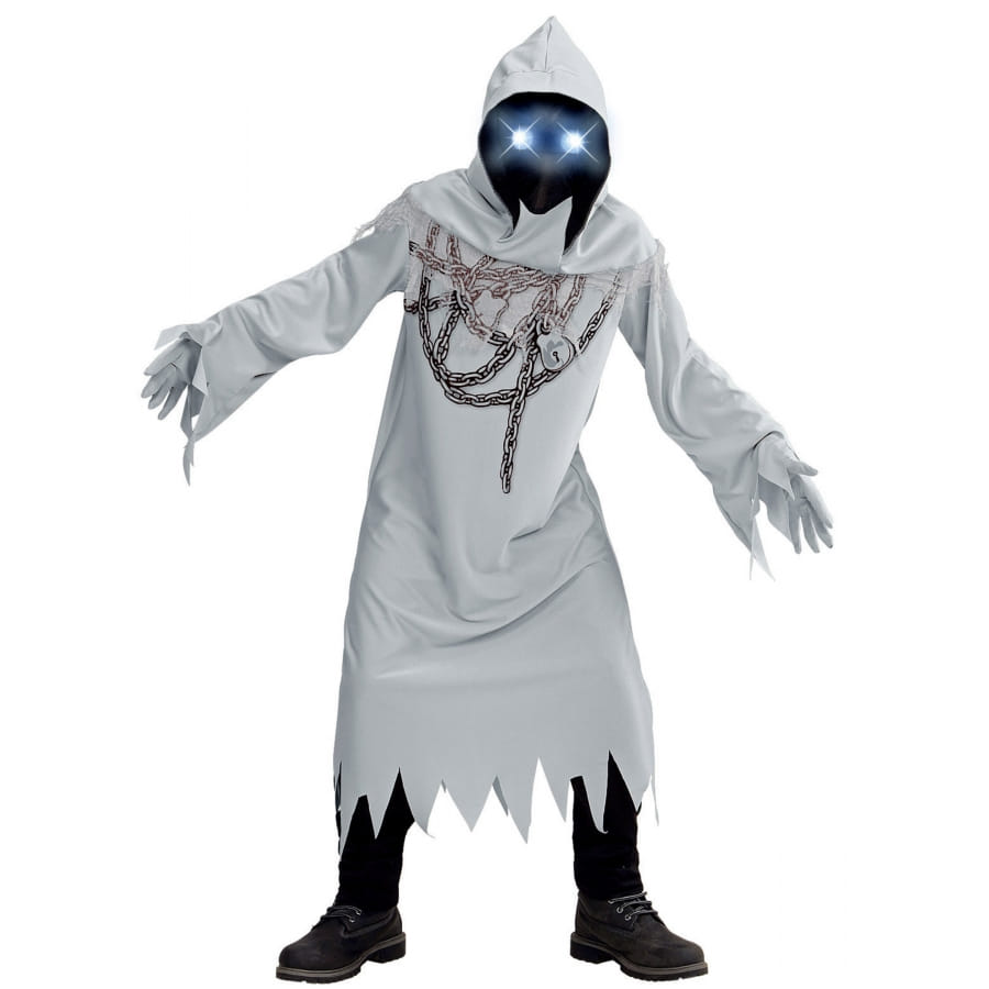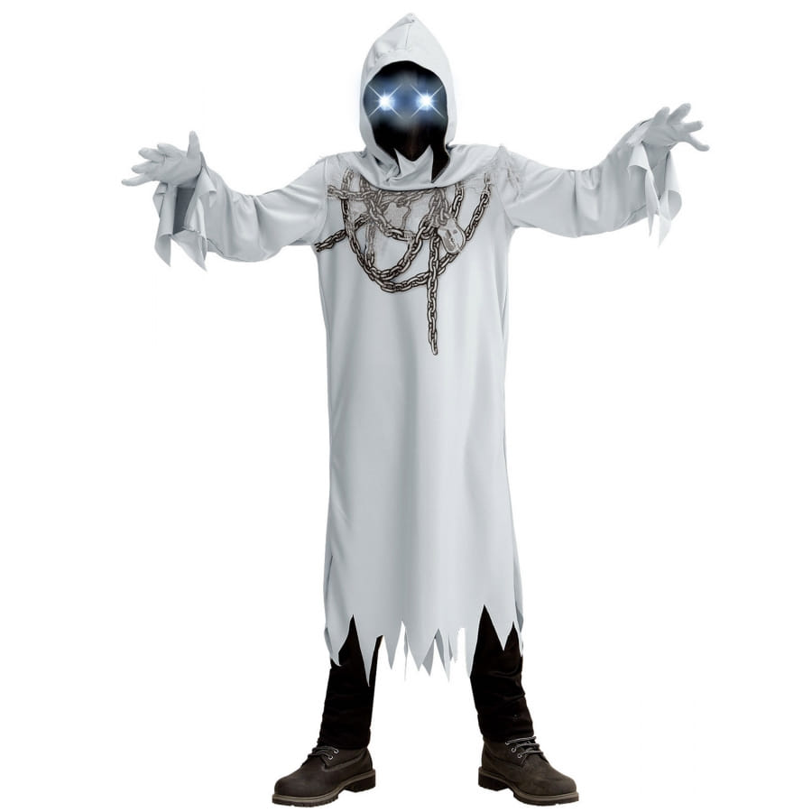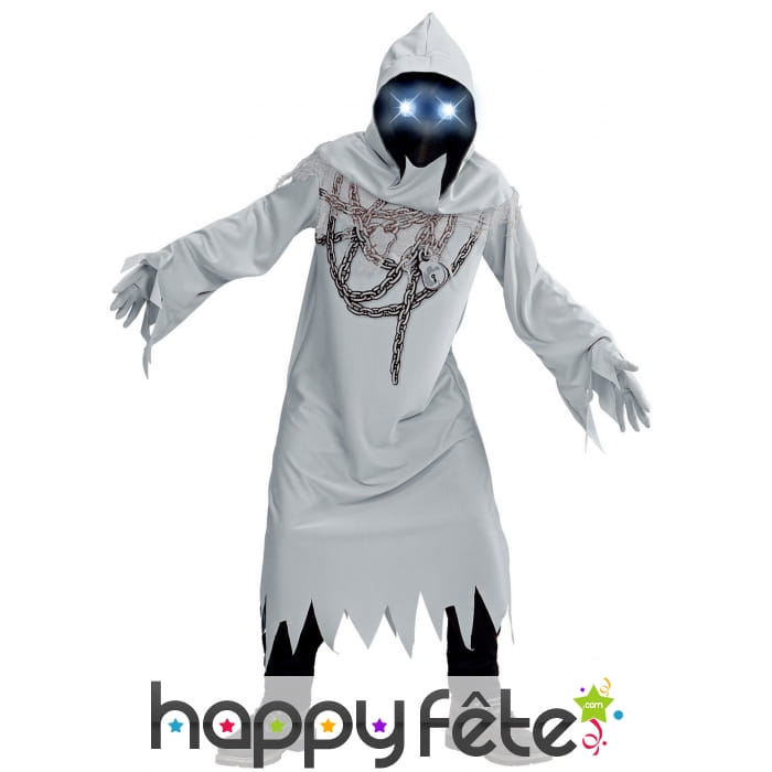 Le costume de fantôme avec masque lumineux pour enfant conviendra aux garçons et aux filles.