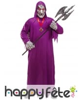 Il est question d'un déguisement constitué d'une longue robe de faucheur de couleur violette.