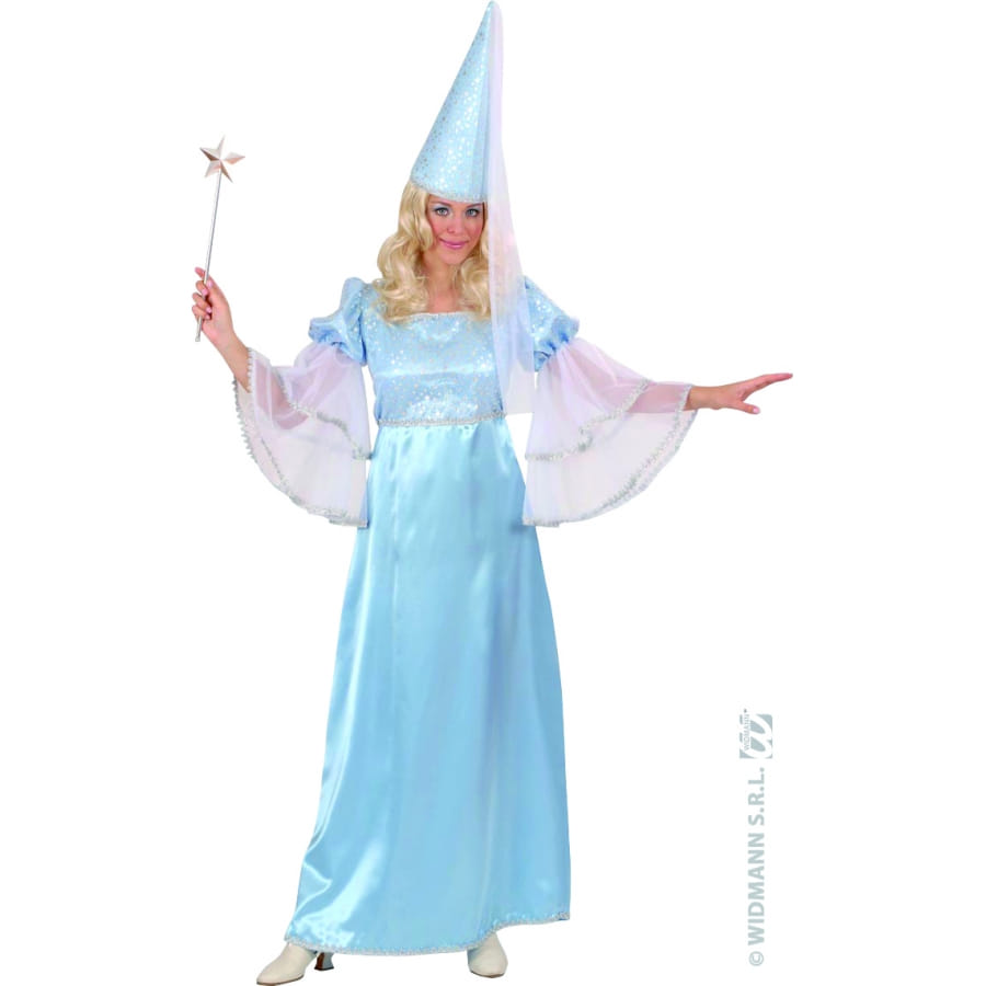 Set de déguisement de conte de fée sous licence, pour femme, composé d'une robe et d'une coiffe avec voile. Cet ensemble bleu est disponible en taille M ou L. Il est parfait pour se déguiser en fée pour un carnaval.