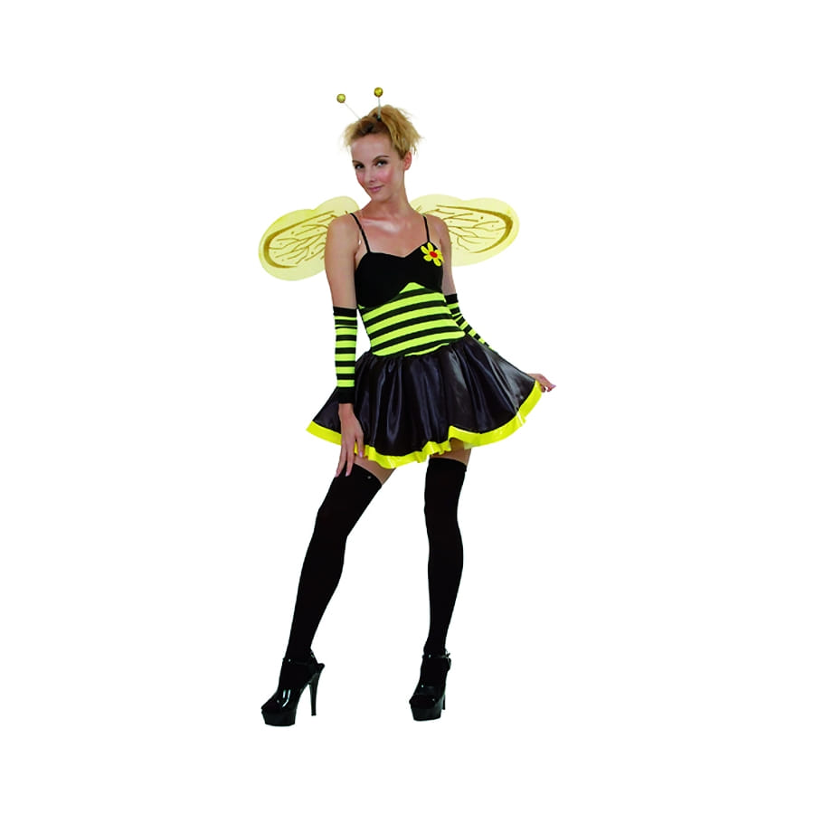 Set de déguisement d'animal, pour femme, composé d'une petite robe, d'un serre-tête, d'une paire de gants et d'ailes. Cet ensemble jaune et noir est parfait pour se déguiser en abeille pour un carnaval basé sur un thème d'animaux.