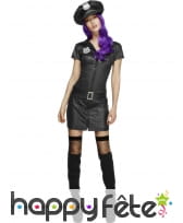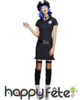 Set de déguisement de charme, pour femme, composé d'une robe courte, d'une écharpe et d'une casquette. Cet ensemble noir et doré est disponible en taille S, M ou L. Il est parfait pour se déguiser en femme pilote sexy pour la Saint Valentin.