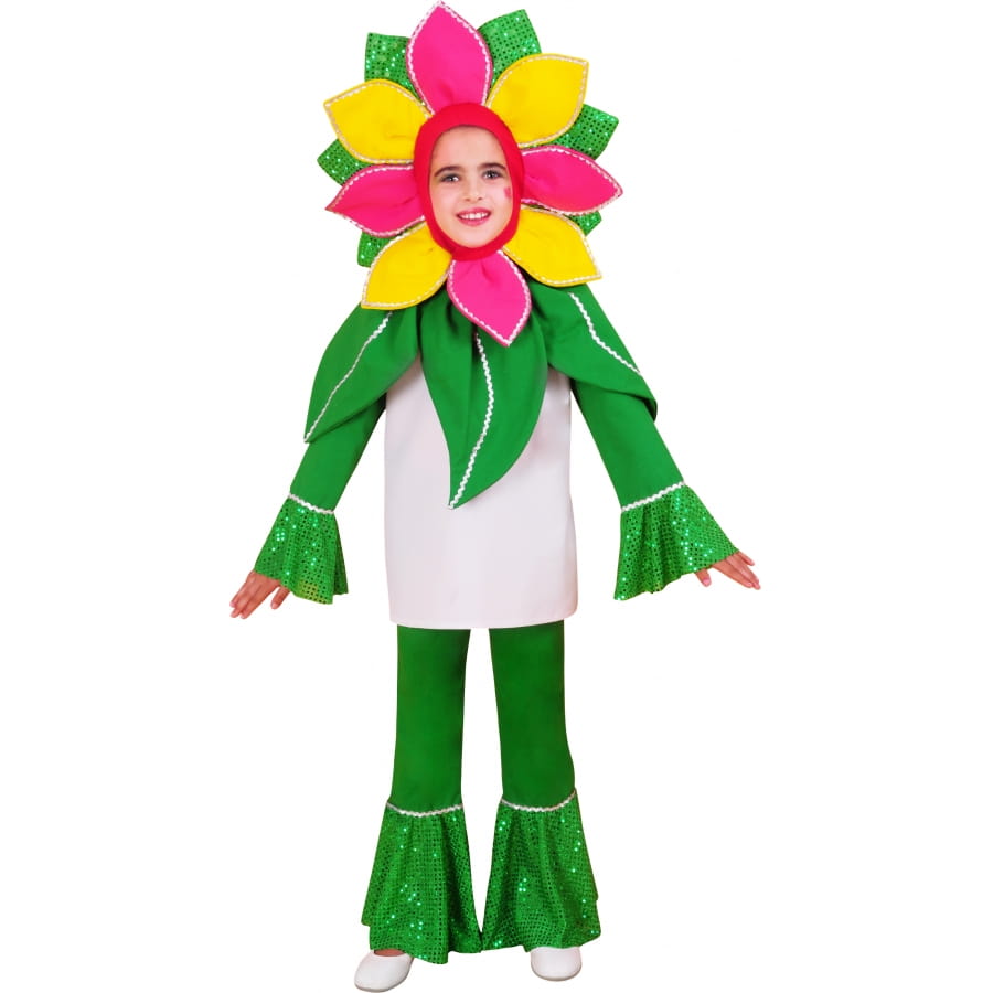 Votre enfant fera sensation dans ce déguisement de fleur de taille 104 cm. Ce déguisement apportera a votre petite fille de la joie et elle sera rayonnante dedans. Idéal pour les fêtes a thème comme l'enfance ou encore nature, elle pourra aussi se déguiser ainsi pour le carnaval ou même un anniversaire. Le déguisement de la fleur est de bonne qualité, elle est composé d'un pantalon vert avec élastique et paillettes au bas, de manches vertes avec poignets paillettes, d'une tunique blanche avec trois feuilles autour du col et d'un chapeau corolle en rose , jaune et vert.