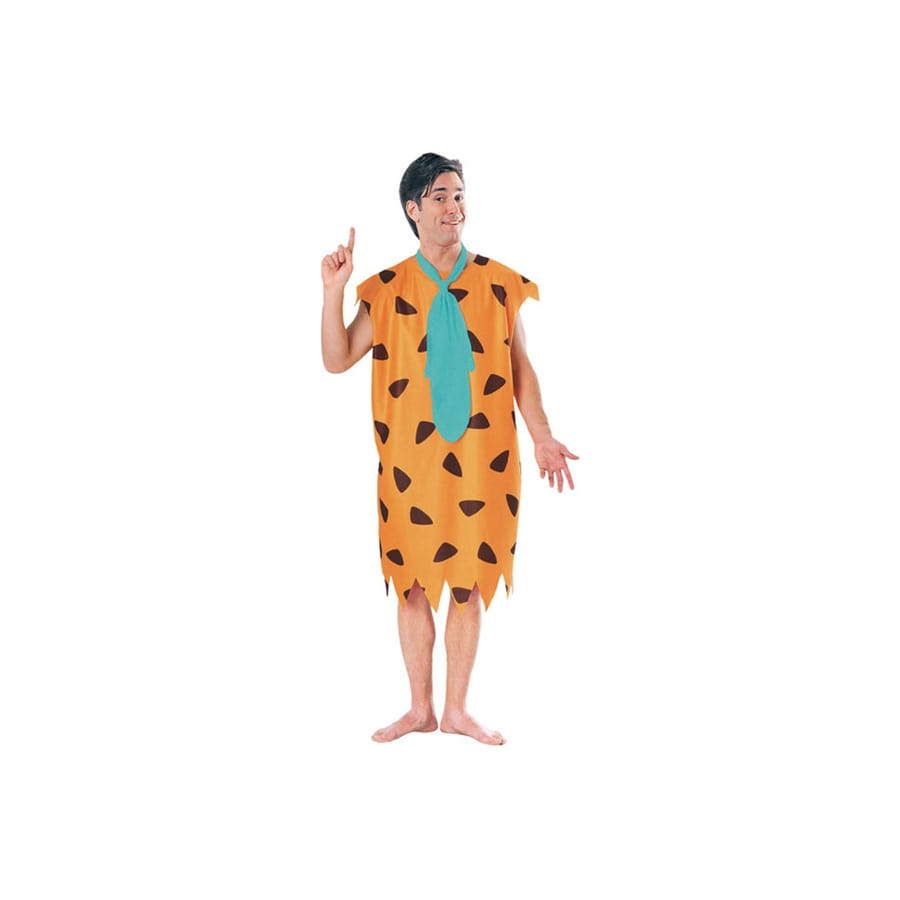 Si vous avez à assister à un évènement festif déguisé, ou encore à un carnaval, misez sur un déguisement original. Pour ce faire, nous vous proposons ce costume de Fred, Pierrafeu, pour homme. Il reste disponible sur notre site. Il s'agit d'une tenue sous le thème La Famille Pierrafeu. Ce costume se compose d'une longue tunique de couleur orange, à manches courtes. Elle porte des taches marron, identiques à celles de l'habit du personnage. La matière utilisée a un aspect satiné et ses bords sont taillés en dents de scie. Une cravate/foulard de couleur bleue, coupée grossièrement, accompagne cette tunique. Ainsi vêtu, vous aurez un look parfait de Fred Pierrafeu, digne de l'âge des pierres !