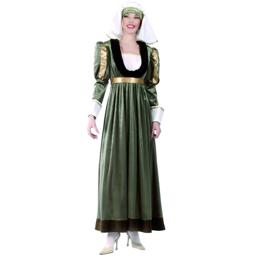 Costume de Gabriella composé d'une robe et d'une coiffe vertes pour femme. Cet ensemble est disponible en taille 38-40 ou 42-44. Déguisez-vous en ravissante femme du Moyen Age pour une soirée à thèmes.