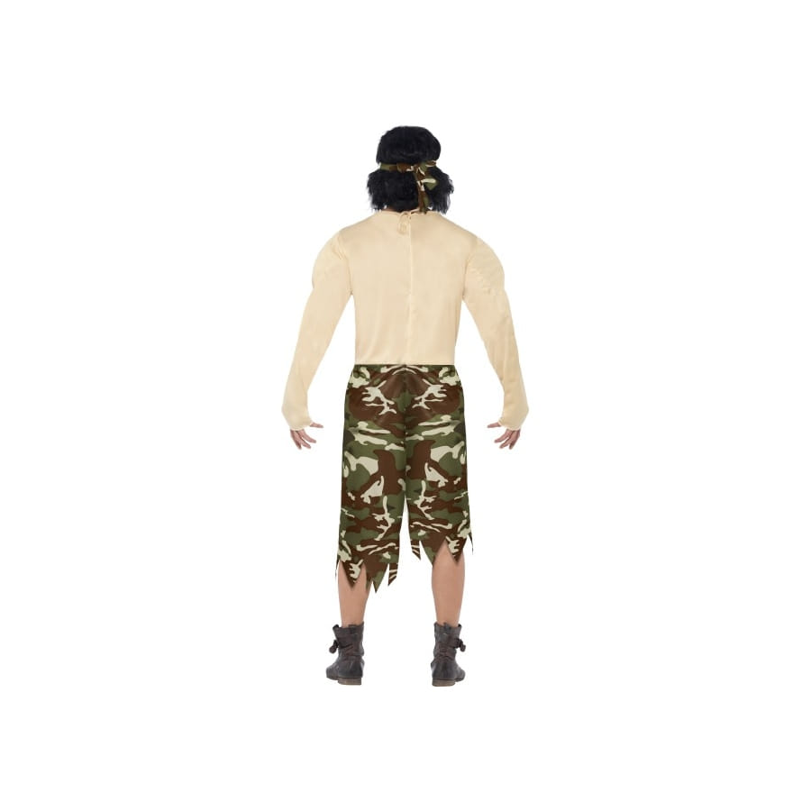 Monsieur muscle on vous craindra avec ce costume Rambo composé d'une combinaison et d'un serre-tête. Cet ensemble beige, marron et vert est disponible en taille M, L Il est parfait pour se déguiser en guerrier tout en muscles.