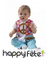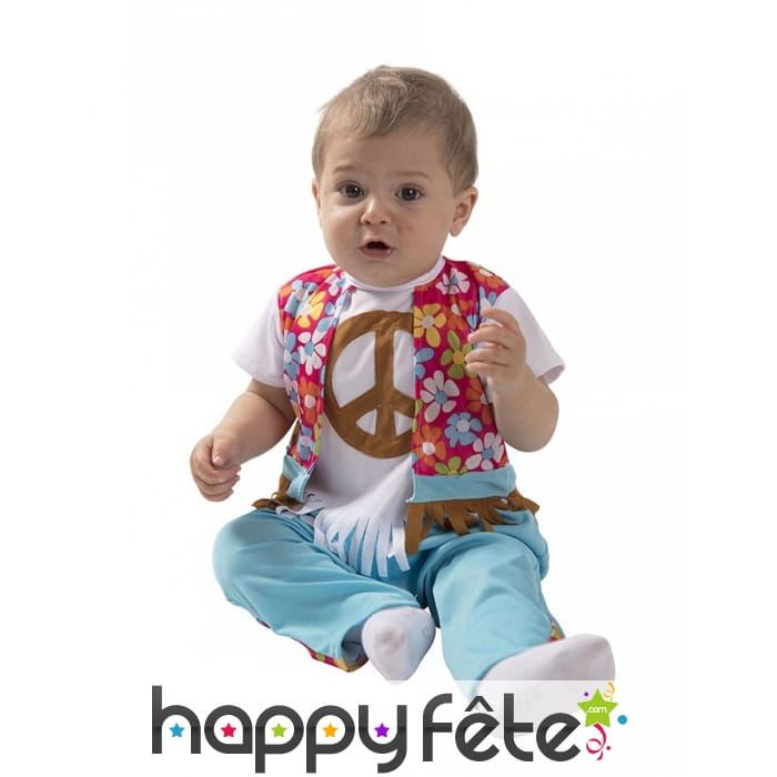 Il présente également un grand symbole peace and love de couleur marron pour marquer le style hippie des années rétro.