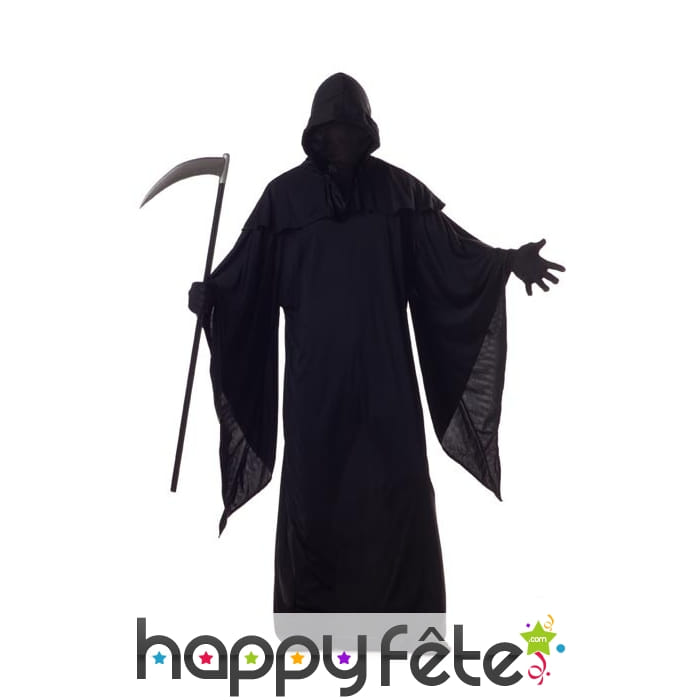 Le costume de la faucheuse sans visage pour adulte est la tenue idéale pour faire peur à vos amis le soir d'halloween.
