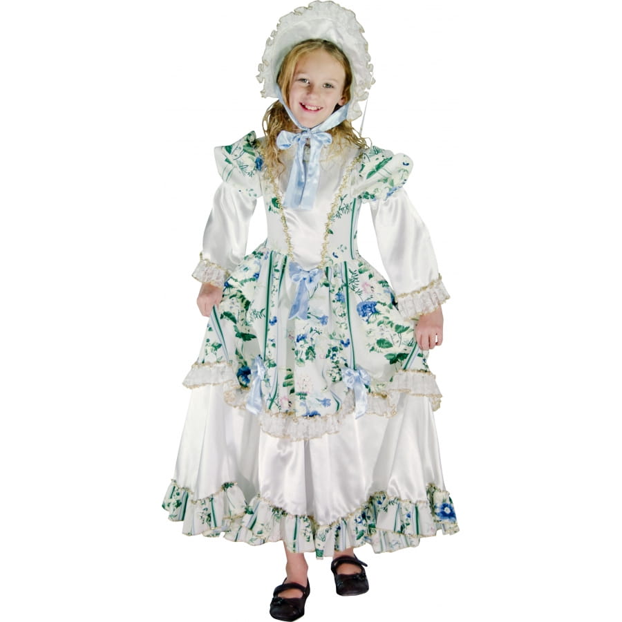 Elle sera belle et très mignonne dans ce déguisement de grande duchesse Nathalie de taille 116 cm. Elle portera fièrement ce déguisement et voudra le porter durant le carnaval ou même un anniversaire. Le costume comprend une coiffe qui peut être attachée avec deux rubans, d'une robe avec des motifs de fleur dessus. La robe est blanc, bleu et vert.