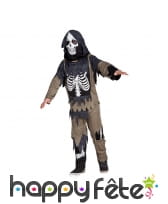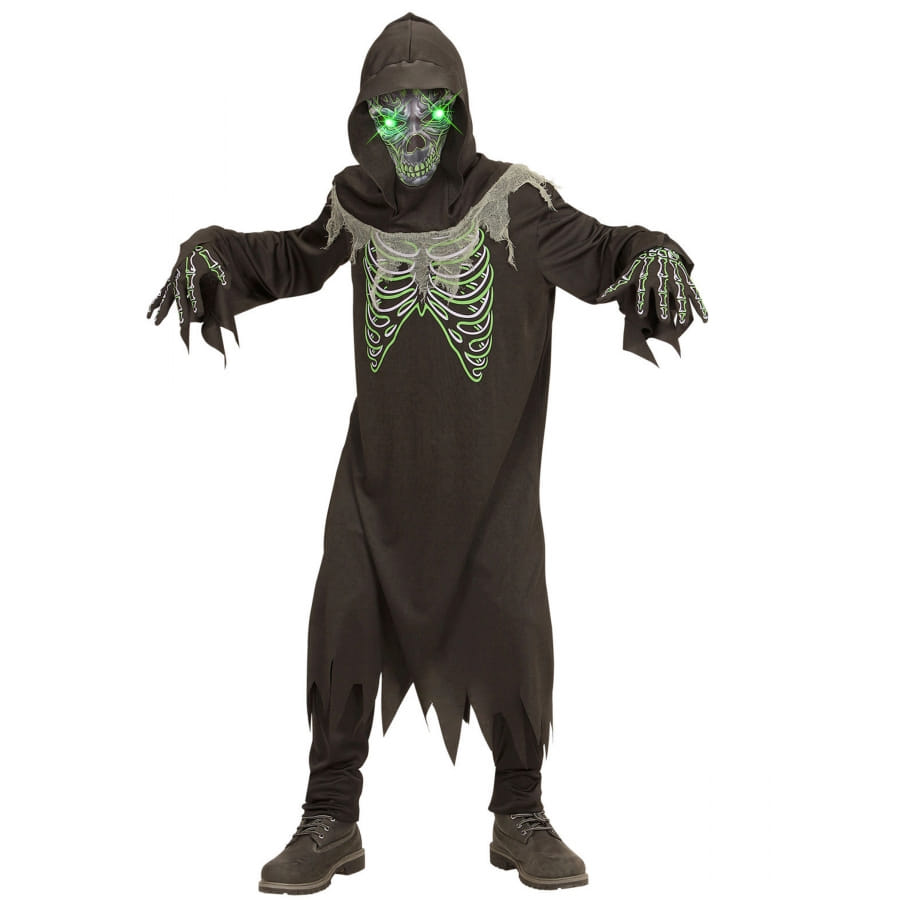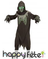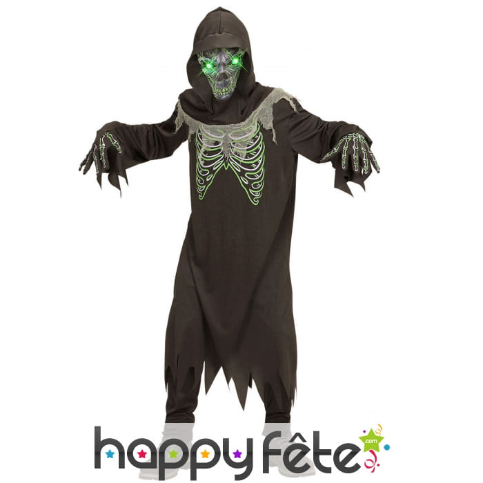 Le costume de la mort avec masque lumineux pour enfant est un ensemble constitué de 3 pièces.
