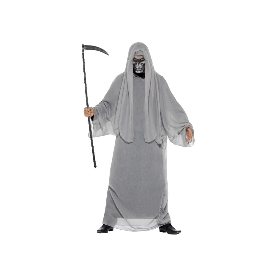 Soyez le plus horrible, le plus effrayant et le plus original des monstres pour Halloween avec ce costume de la mort. Il comprend une très longue toge avec une capuche et un masque affreux, sous forme d'une tête de mort, entièrement de couleur grise. C'est un déguisement destiné aux hommes. Avec cette tenue, vous pourrez filer la frousse à tout votre entourage, grands ou petits. En arborant ce costume, vous serez à la fois un fantôme, un démon et un tueur, impossible de passer sans terrifier quelqu'un. Rajoutez une serpe à ce déguisement et vous voilà un vrai faucheur de la mort. Commencez à compter vos victimes !