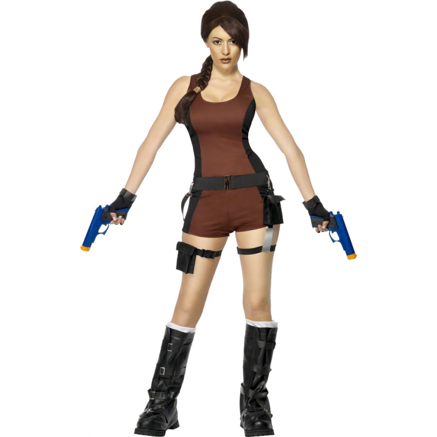 Pour une soirée déguisée rien de mieux que ce costume de Lara Croft, vous serez la plus admirée de toutes. Ce déguisement de taille M est composé d'un haut marron avec deux bandes noires sur le coté, une ceinture noire, d'une perruque avec une tresse et des accessoires. Vous pourrez le porter pour le carnaval ou une soirée ayant pour thème les célébrités.