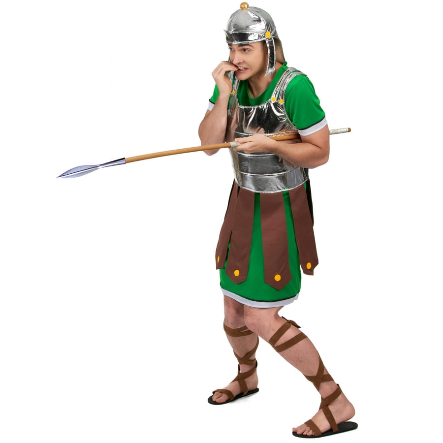 Avec la tunique verte surmontée d'un plastron en mousse effet métallique et les lanières marrons aspect cuir qui imitent les jupes des soldats, vous ressemblerez à un véritable guerrier de la Rome antique.