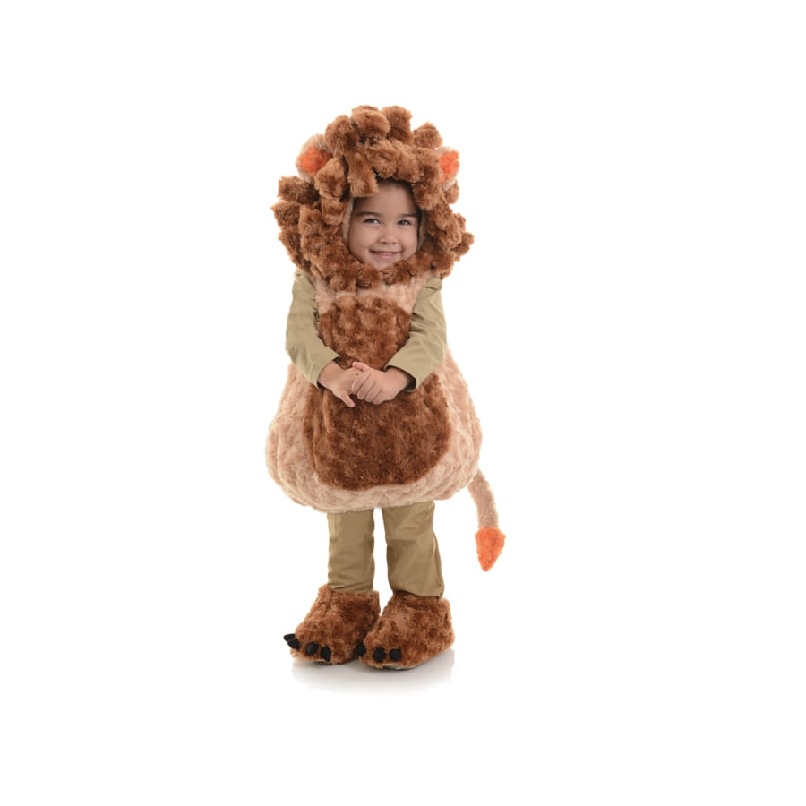 Votre petit bout de chou va gouverner la Terre des lions ! Ce superbe déguisement de petit lion est dédié aux enfants, que ce soit garçon ou fille, de 2-4 ans, 18-24 mois et 4-6 ans. Il se compose d'une combinaison en peluche très confortable, avec une capuche intégrée qui prend la forme d'une tête de lion. La capuche et le ventre sont de couleur marron foncé et le reste est en marron clair. Une petite queue est présente au dos de la combinaison. Une très jolie paire de sur-chaussures surmontée de petites griffes assortie à la combinaison termine l'ensemble (justaucorps non compris). Ce sera le déguisement parfait pour un carnaval, une soirée ou un anniversaire sur le thème des animaux. Il fera de votre enfant le roi de la jungle, il va rugir de plaisir, c'est certain !