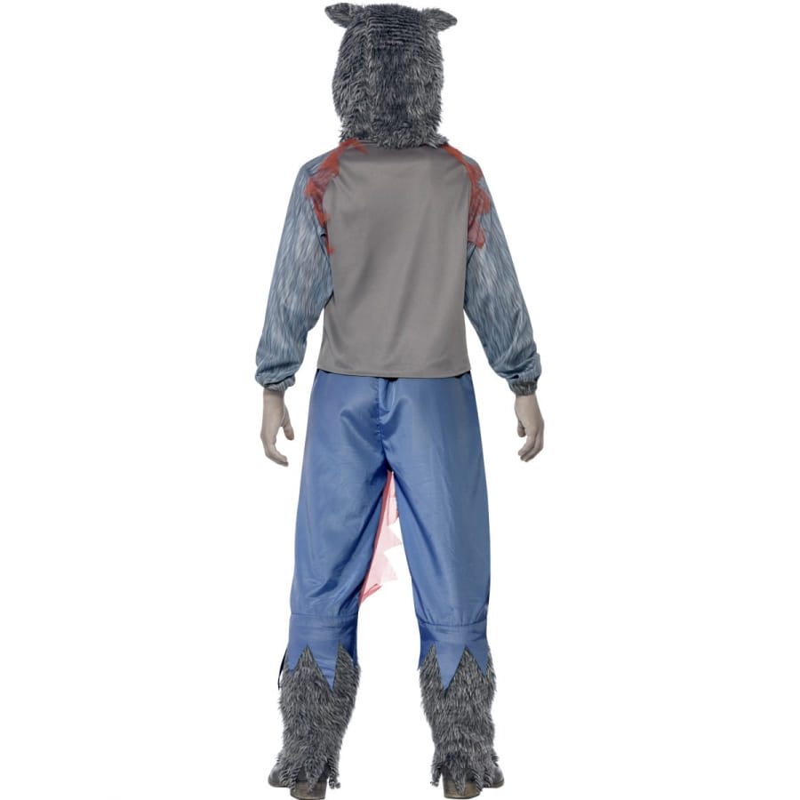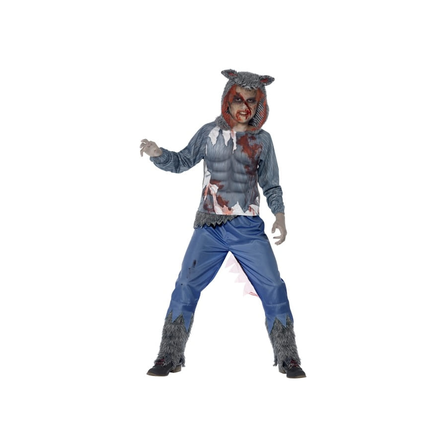 Si votre petit garçon n'arrive pas à se décider entre un costume de loup garou ou de zombie pour Halloween, eh bien il n'a qu'à prendre les deux. Nous avons ce déguisement deux en un que nous appelons costume de loup garou zombie pour enfant. Il est constitué d'un top imprimé de muscles et d'un tee-shirt blanc en lambeaux pour faire croire que la transformation en loup garou s'est fait il y a quelques instants. Ce top possède une capuche à fausse fourrure grise ensanglantée avec les oreilles du loup garou. Vous aurez également un pantalon de couleur bleu-grise, avec vers le bas une fausse fourrure grise. Les enfants de 10 à 12 ans, 7 à 9 ans et 4 à 6 ans pourront bénéficier de ce costume.