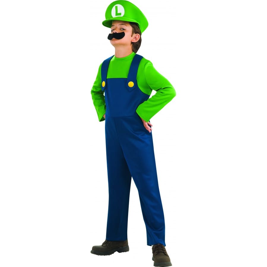 Vous serez Luigi avec cette casquette, la combinaison bleu, jaune et vert et la moustache. Cet ensemble est disponible en tailles L et M, pour enfants de 8 à 10 ans. Ce déguisement est parfait pour un anniversaire ou un carnaval.