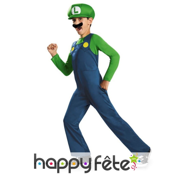 Tous les enfants qui ont déjà joué aux jeux vidéo connaissent Luigi, celui qui accompagne Super Mario dans toutes ses aventures. Ce costume de Luigi pour enfant leur est alors destiné. De plus, il est sous licence Jeux vidéo, avec ce costume sous forme de salopette bleue et verte, cette casquette verte avec l'initiale de Luigi et une moustache bien fournie.