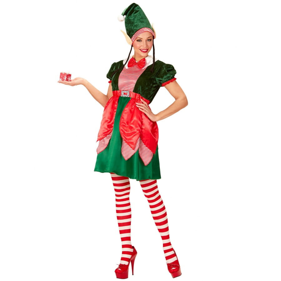 Ce Costume de lutin assistante du Père Noël femme est composé d'une robe et d'un bonnet pointu avec oreilles et nattes.