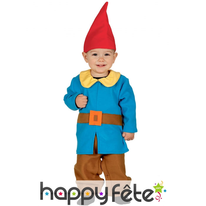 Braquez tous les regards sur votre mignon petit garnement le temps d'une soirée déguisée, grâce au costume de lutin bleu et marron pour bébé.