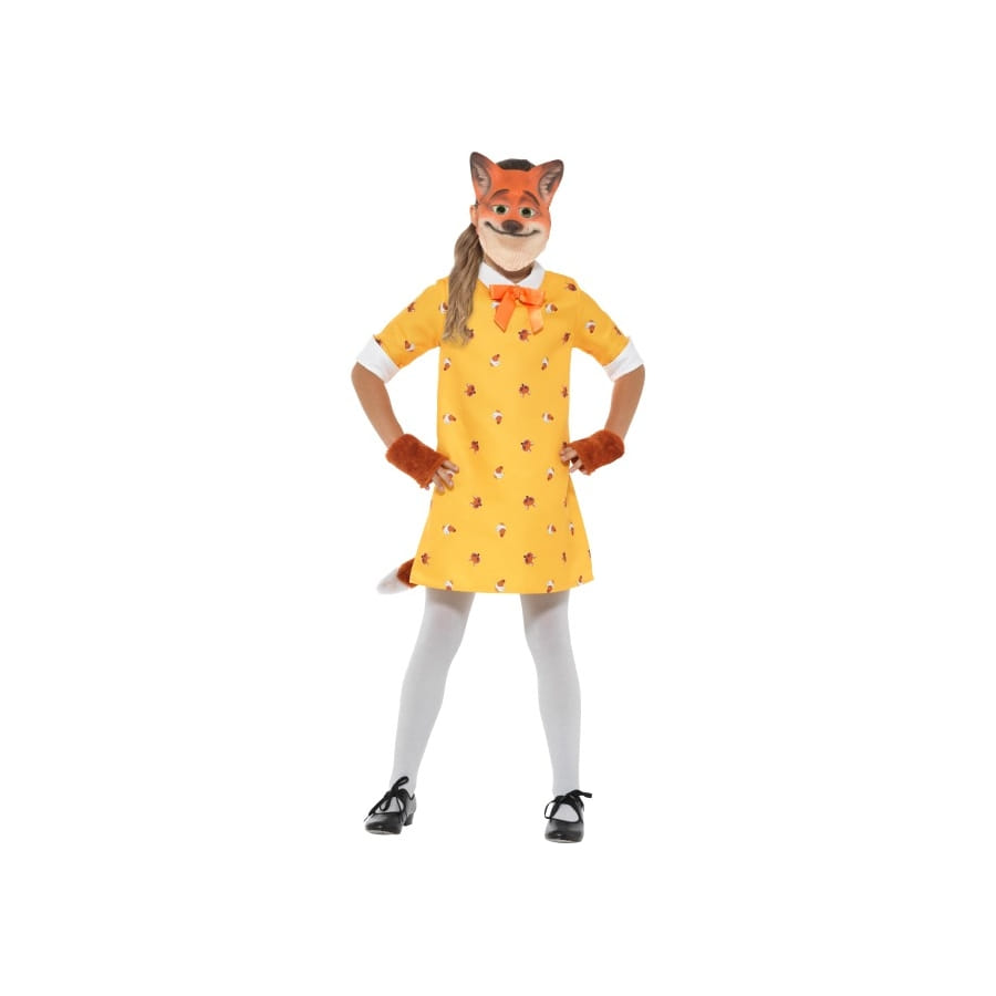 Tout simplement fantastique, tel est le mot qui peut qualifier la célèbre Mme Fox. Son personnage sera bien interprété dans ce costume de madame Renard pour fillette. L'ensemble est proposé en différentes tailles pour les demoiselles de 4 à 12 ans. Tout comme dans le dessin animé, vous disposerez d'une robe de couleur jaune orée de quelques motifs rouges. Les manches sont mi-longues et le col est agrémenté d'un petit noeud orange. Une queue a été placée à l'arrière. Elle a l'aspect et la couleur d'une fourrure de renard. Il en est de même pour la paire de gants très agréables au toucher. Pour compléter le déguisement, un masque en EVA représentant la tête de Mrs Fox est fourni. Il recouvre uniquement la face avant du visage.