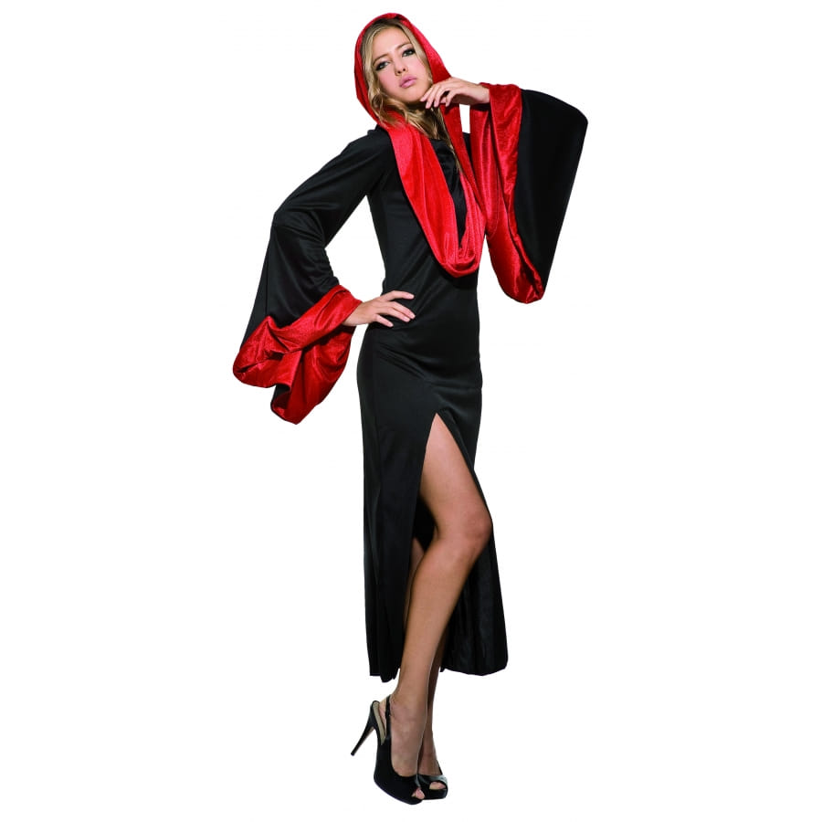 La magie est un domaine inexplicable. Le plus souvent, ce sont les hommes qui pratiquent cet art. Mais désormais, la gente féminine pourra également s'essayer à cette activité. Découvrez un fabuleux costume de magicienne séductrice pour Halloween. Vous allez pouvoir incarner une assistante sexy ou bien effectuer quelques tours pas vous même ! Le déguisement en question est composé d'une longue robe à manches longues et évasées. Elle est également dotée d'une capuche. Vous y retrouverez du noir et du rouge, harmonieusement répartis pour donner une allure chic et élégante à la tenue. Elle se marie à merveille avec des talons hauts et un maquillage discret. Qui aurait cru qu'il suffirait d'une simple robe pour constituer un déguisement aussi parfait ! Il est à noter que ce modèle vous sera fourni en taille médium large.
