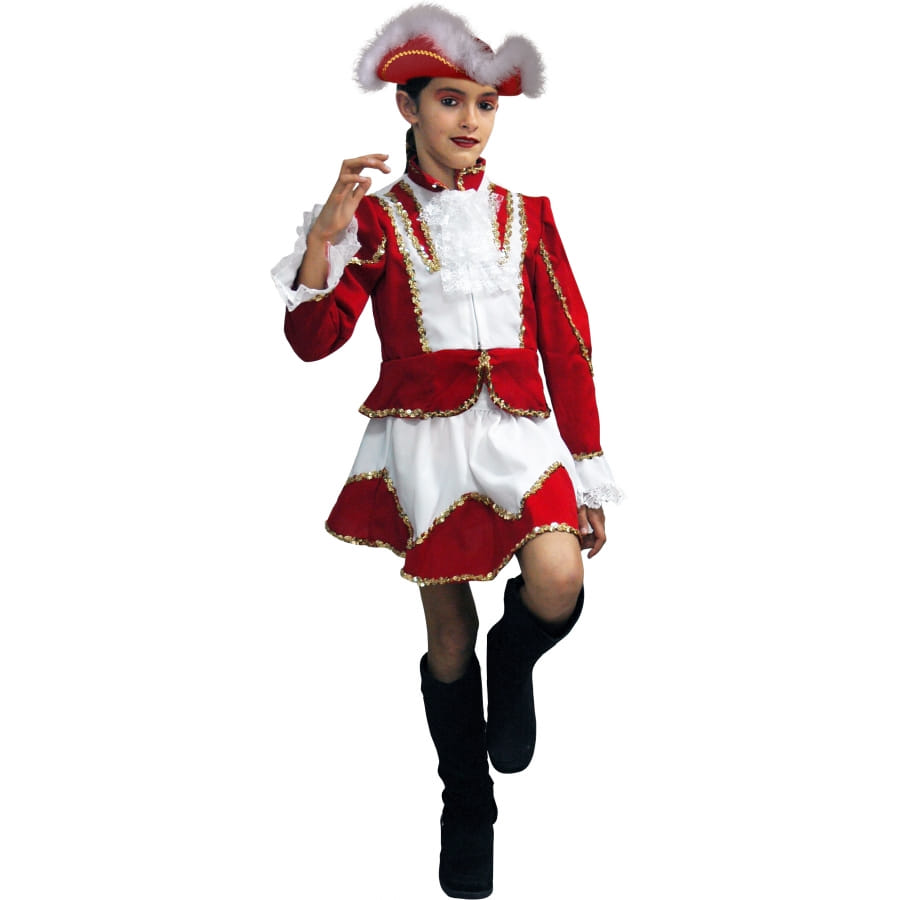 Elle sera une belle majorette dans ce déguisement. Elle marchera et la parade sera au rendez vous pour le carnaval. Elle pourra aussi le mettre pour un anniversaire à thème comme l'uniforme. Ce magnifique costume est composé d'une jupe blanc et rouge avec bordure or et bronze, il est aussi composé d'une veste blanc et rouge bordures or et argent avec de la dentelle sur le devant et l'extrémité des manches.