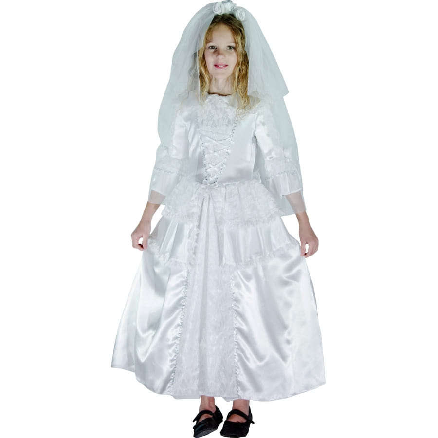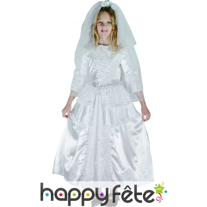 Elle se sentira comme une véritable mariée dans ce déguisement. Magnifique déguisement elle pourra le porter pour le carnaval, ou une fête sur le thème romantique, elle pourra même jouer à la princesse dans ce déguisement. De taille 116 cm. Il est composé d'une robe à cerceaux, d'un voile avec fleurs.