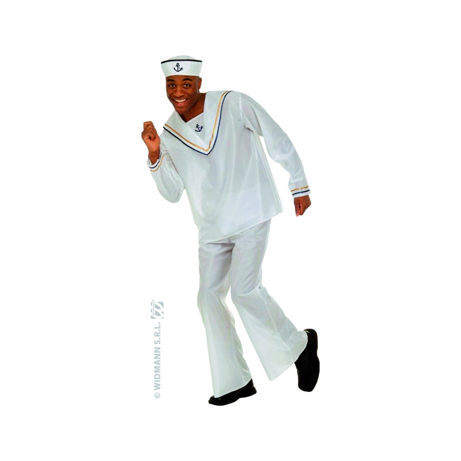 Ohé matelot, enfilez ce costume composé d'une tunique, d'un pantalon et d'un chapeau. Cet ensemble entièrement blanc est idéal pour vous déguiser en marin lors d'un carnaval.