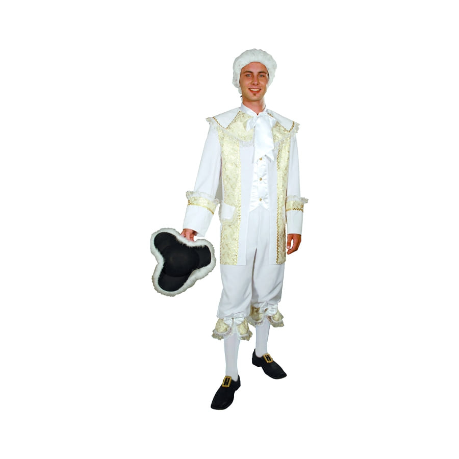 Ce costume pour homme vous ira comme un gant messieurs, vous serez combler dans ce costume. On vous fera la révérence lorsque vous passerez, ce déguisement de bonne qualité est idéal pour les fêtes comme moyen age ou historique. En marquis vous trouverez vite une marquise. Ce costume est disponible en taille: 50/52 et 54/56. Il est composé d'une veste blanc et or et d'un pantalon de la même couleur.
