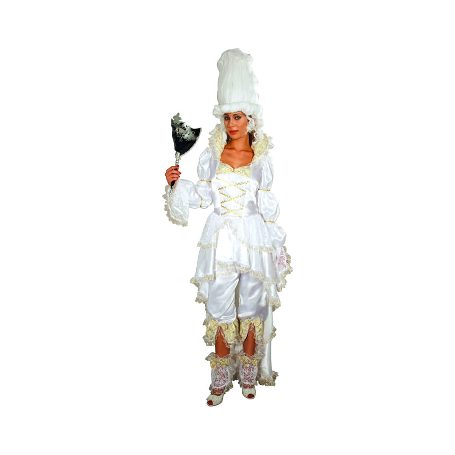 Ce costume original vous ira comme un gant si vous voulez etre éblouissante lors d'une soirée à thème comme le moyen age. Déguisement de bonne qualité. Ce costume de marquise baroque de couleur blanche est disponible en 38/40 et 42/44. Il est composé d'une robe, d'un pantalon et de guetres.