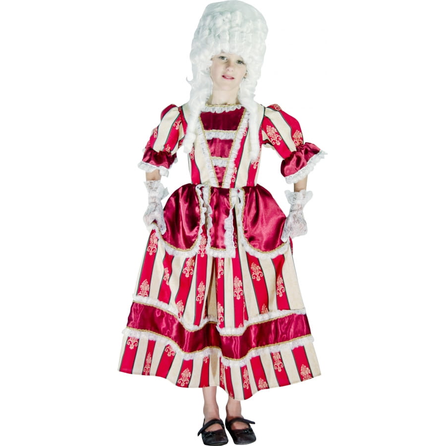 Dans ce déguisement de marquise, votre petite fille se sentira comme une véritable grande dame. Elle pourra le porter pour un anniversaire ou même durant le carnaval. Ce déguisement de taille 116 est composé d'une rive avec paniers, de couleur bordeaux et blanc, il y a de la dentelle sur cette belle robe.