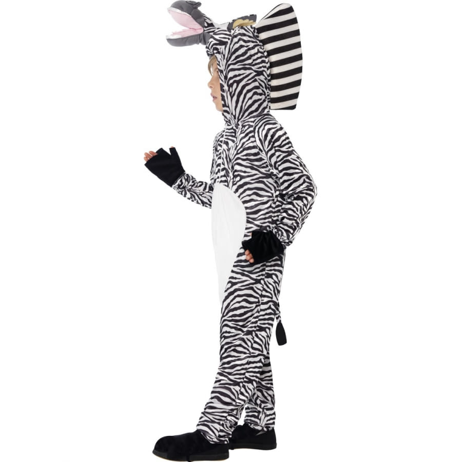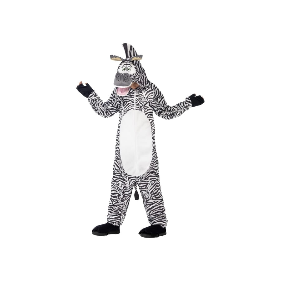 Le film Madagascar avec ses animaux hilarants, voilà ce que nous rappelle ce déguisement de Marty le zèbre. Désormais, vos petits garçons et petites filles de 7 à 9 ans et de 4 à 6 ans peuvent revêtir le costume des personnages de leur film d'animation préféré. Ce costume est composé d'une unique combinaison, à rayures de zèbres blanches et noires, et dotée d'une capuche rembourrée, représentant très bien la tête du zèbre, dont la bouche est ouverte. On reconnaît très bien Marty en voyant ce déguisement. Nous conseillons pour ce costume un nettoyage à sec uniquement. Vos enfants seront aux anges en voyant un déguisement pareil.