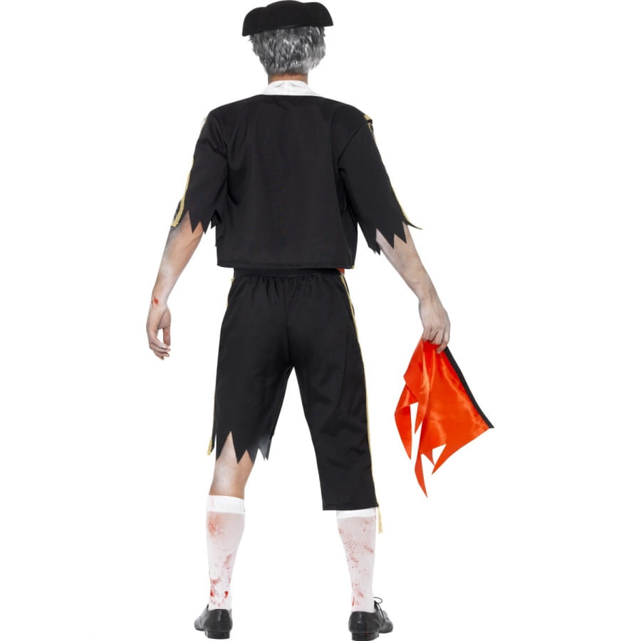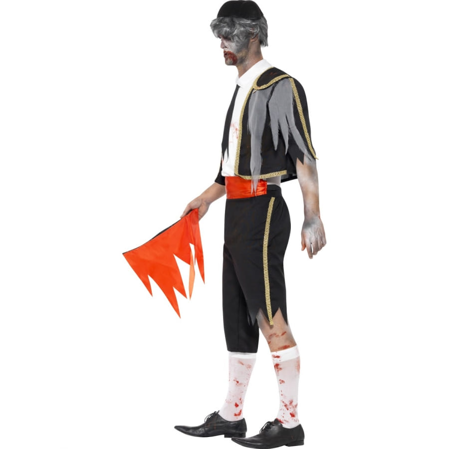 Un peu d'originalité pour une fois, et osons zombifier n'importe quel personnage pour avoir un assortiment de déguisements pour Halloween. Cette fois-ci, le matador est à l'honneur avec ce costume de matador zombie. Composé d'un déguisement classique de Matador, mais taché de sang et en lambeau, vous aurez une veste de couleur noire et grise, un pantalon de couleur noire, un chapeau spécial pour Matador de couleur noire, une ceinture de couleur rouge et un drapeau rouge à agiter devant chaque taureau que vous rencontrerez sur votre chemin. Les tailles L et M sont disponibles pour ce costume.