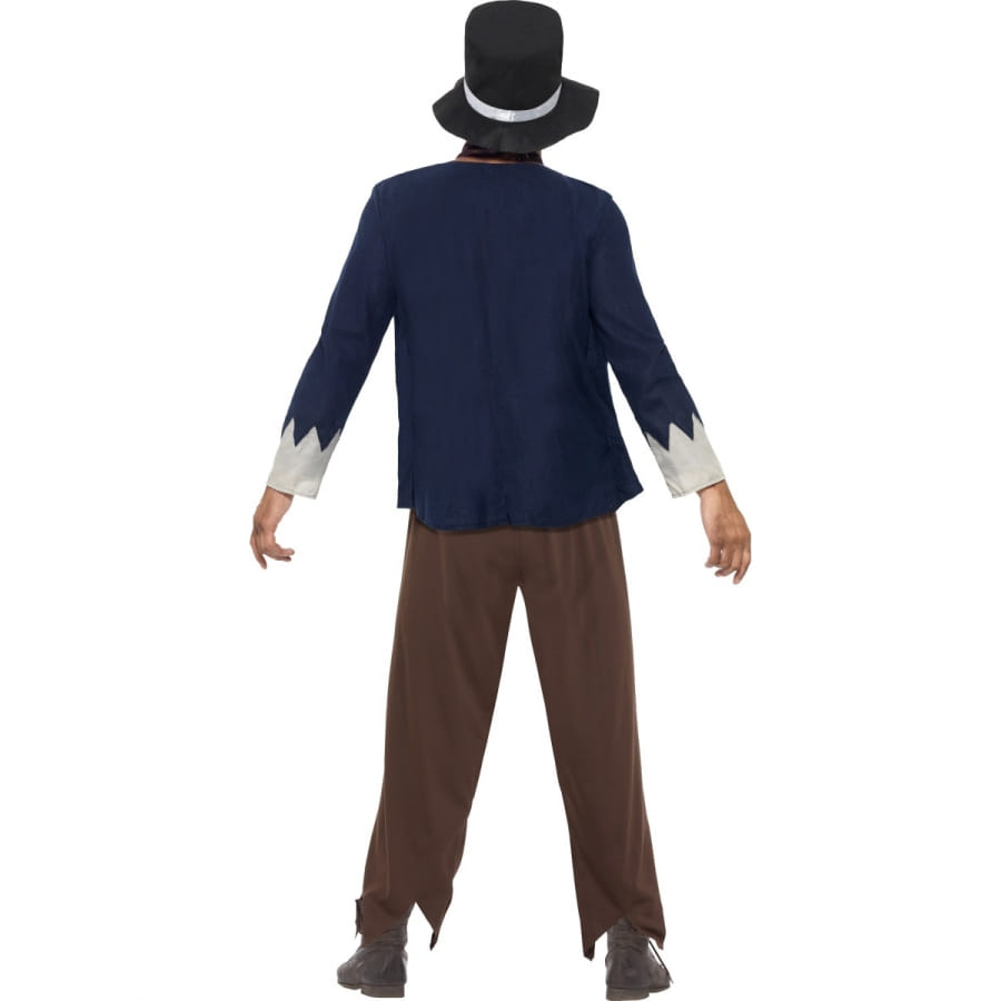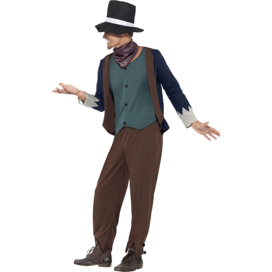 Lorsque vous vous déguiserez pour une fête dont le thème est l'époque victorienne, n'oubliez pas que vous pourrez incarner également le petit peuple comme les mendiants par exemple. Vous pourrez alors mettre ce déguisement de mendiant de l'époque victorienne. Vous aurez pour cela un top de couleur verte à l'intérieur et bleue et blanche à l'extérieur. Il y a également un pantalon de couleur marron en lambeau vers le bas du pantalon, un chapeau à large bord de couleur noire et blanche et un foulard marron. Après avoir mis ce costume, qui soit dit en passant est proposé en taille L et M, nous vous conseillons de mettre un petit maquillage pour faire en sorte que votre visage soit un peu sale.