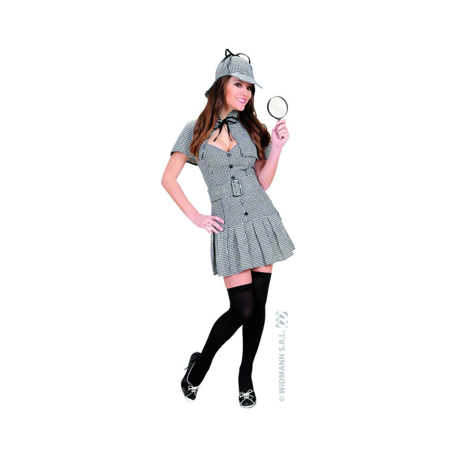 Set de déguisement de charme, pour femme, composé d'une capeline, d'une robe courte, d'une ceinture et d'un chapeau. Cet ensemble blanc et noir est disponible en S, M ou L. Il est parfait pour se déguiser en détective sexy pour un carnaval.