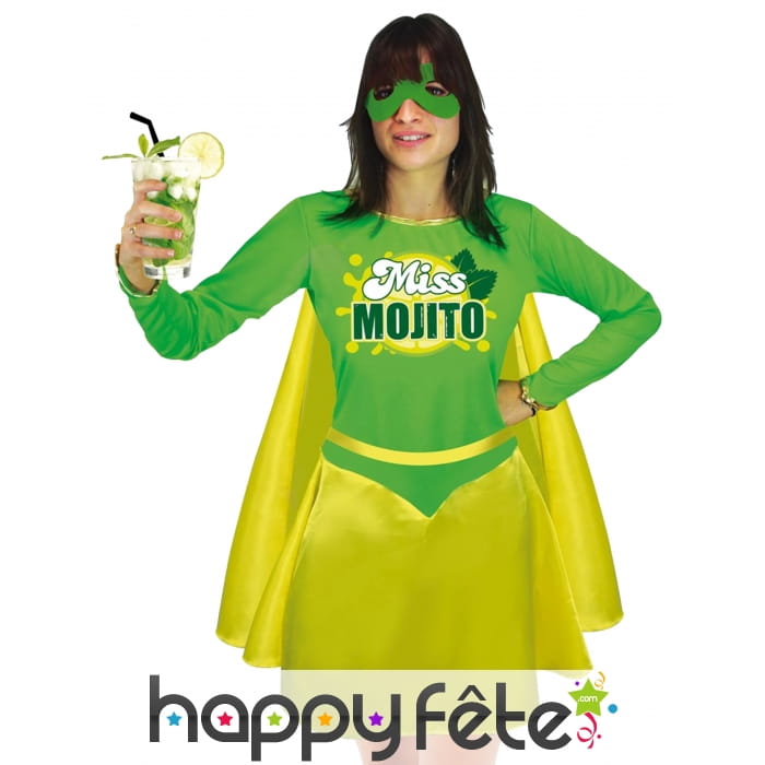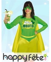Sur la poitrine, le symbole de la super justicière Miss Mojito est imprimé avec fierté.