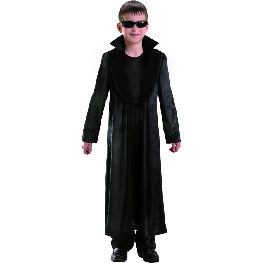 Il se mettra dans la peau du personnage célèbre de Matrix. Il bougera comme lui dans ce déguisement . Votre garçon vivra des aventures et ne voudra plus le quitter. Pour le carnaval il se transformera en star de cinéma grâce a ce déguisement. Ce manteau néo avec manches longues de couleur noir.