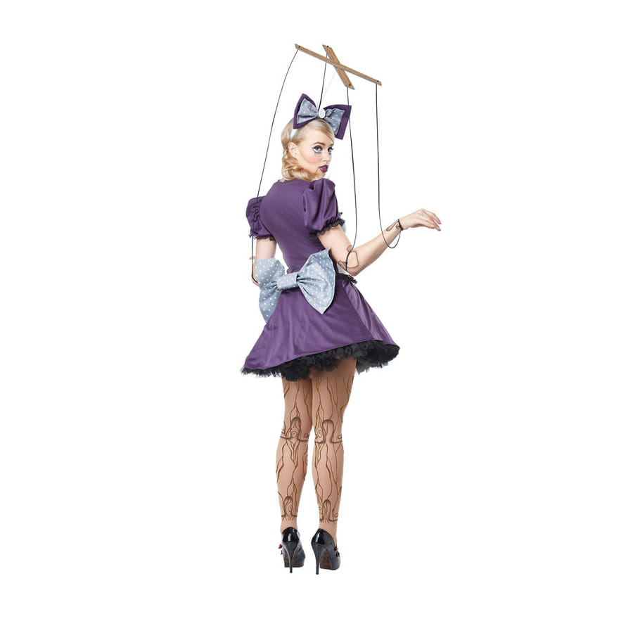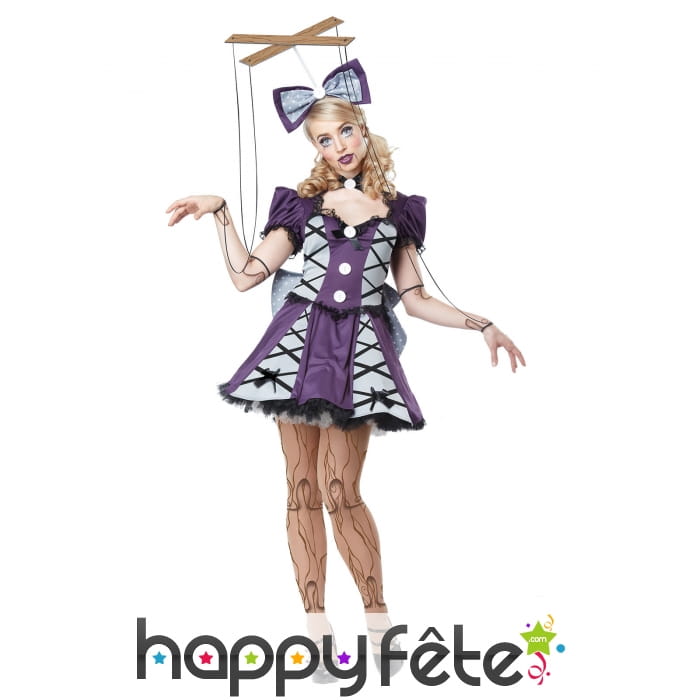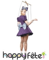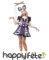 Optez pour un déguisement d'Halloween très original, en revêtant ce costume de pantin gris et violet pour femme.