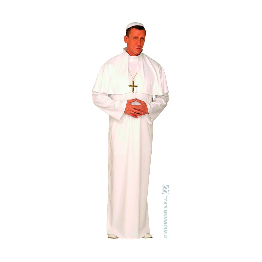 Vous aurez une allure tout à fait "papale" avec ce costume pour homme ou adolescent, composé d'une robe, d'une coiffe et d'une pèlerine. Cet ensemble blanc est parfait pour se déguiser en religieux ou en prêtre italien.