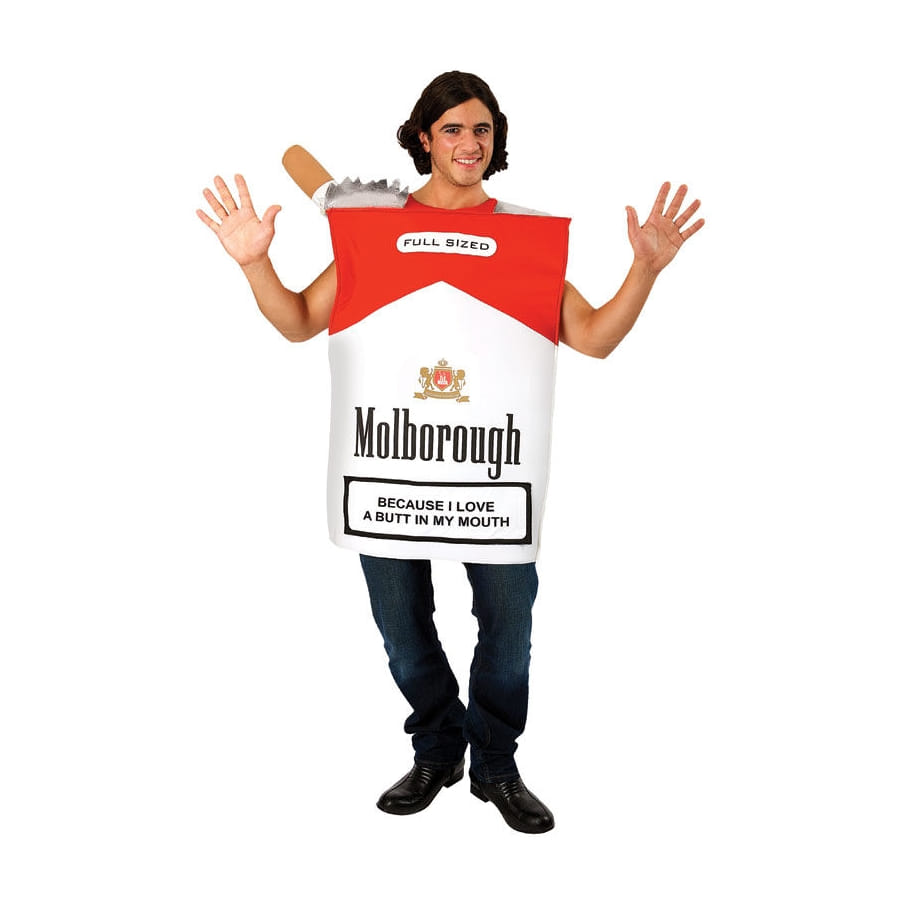 Apportez une touche d'humour à votre enterrement de vie de garçon, en optant pour ce costume de paquet de cigarette.
