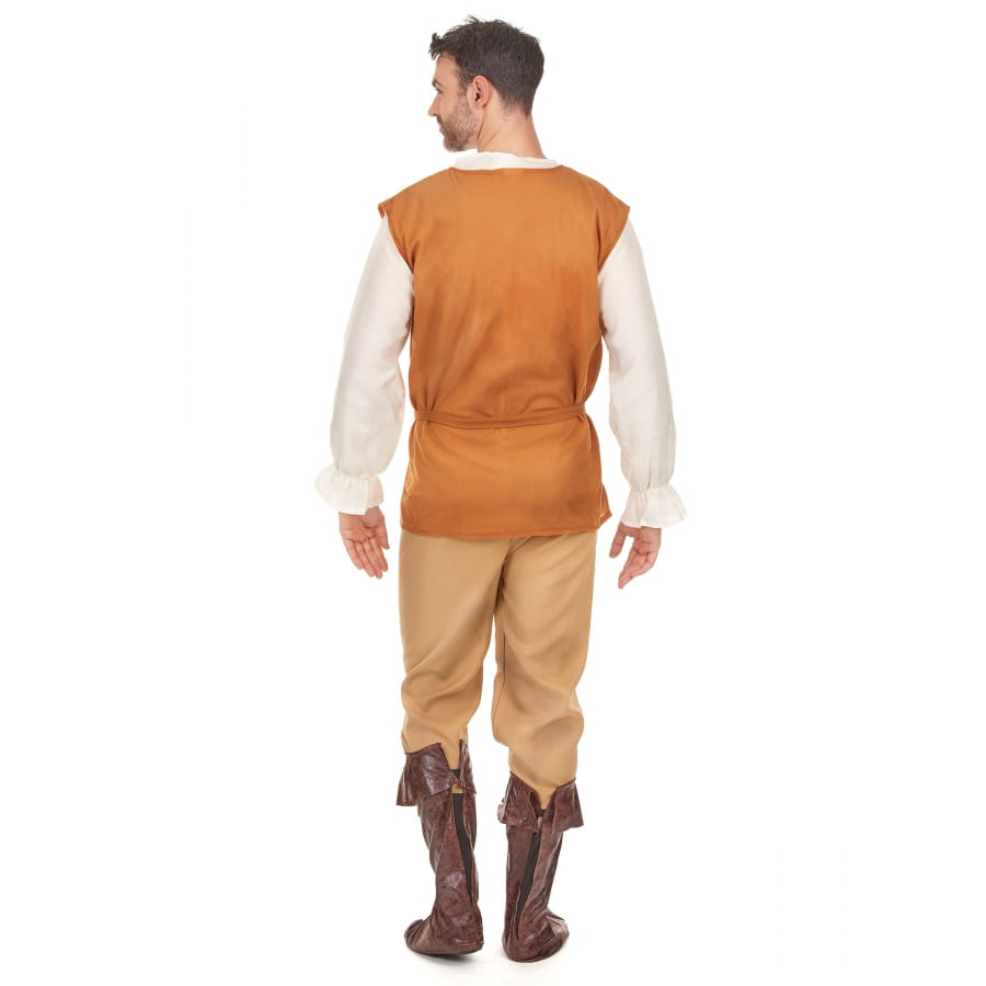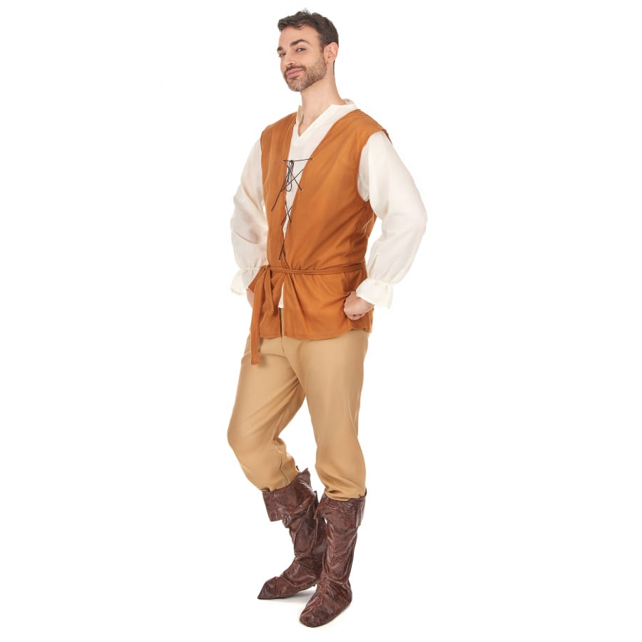 Retournez dans l'ère du Moyen-Age et l'époque des rois avec ce costume de paysan médiéval pour homme adulte. Ce déguisement se compose d'une chemise jaune pâle à manches longues, d'un pantalon gris, d'un gilet qui se ferme avec des lacets, et d'une ceinture marron qui s'entrelace autour de la taille en faisant un noeud. Il comporte également des couvre-bottes qui donnent un effet imitation cuir. Ce déguisement est parfait pour incarner un fermier de l'époque médiévale au cours de vos soirées costumées ou pour un carnaval. Des déguisements de paysanne sont aussi disponibles pour ces dames, de même que des perruques d'époque pour se plonger complètement dans la peau du personnage.