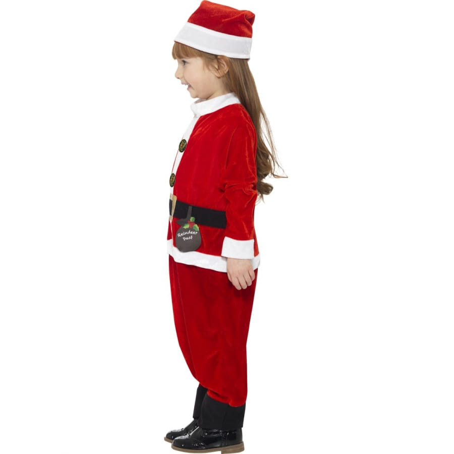 Ho ho ho... Préparez le traîneau car le Père Noël est de retour ! Un petit enfant Noël l'accompagne pour des aventures magiques. Emparez-vous vite de ce costume de père Noël taille enfant. Il est composé d'une combinaison, reproduction parfaite de celle du vrai Père Noël, et d'un bonnet assorti. L'ensemble est de couleur rouge et blanche. Vous disposerez d'une combinaison confortable à manches longues, ornée de motifs boutons sur le devant. La partie inférieure du pantalon est même de couleur noire pour donner l'impression que votre enfant porte des bottes. Le chapeau quant à lui ressemble à un petit bonnet adorable. Votre petit ange vous distribuera non des cadeaux, mais des câlins à volonté !