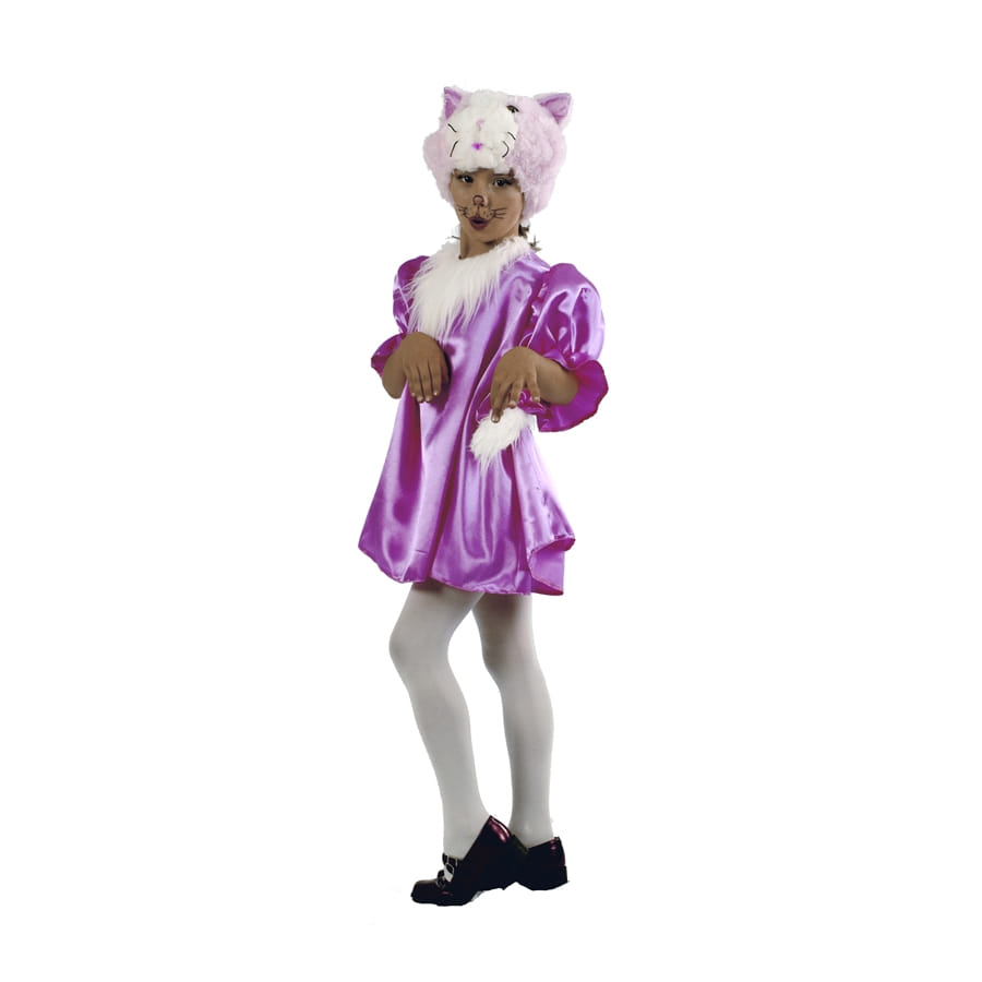 En un clin d'oeil, transformez votre petite fille en adorable petit chaton haut en couleur avec ce costume de petit chat violet enfant purement original. Il se compose d'une petite robe courte et ample de couleur violette, réalisée dans un tissu satiné très brillant. La robe possède des manches 3/4 bouffantes et évasées. Pour une petite touche de réalisme, l'encolure est agrémentée de poils synthétiques blancs, et une petite queue de la même matière est cousue à l'arrière. Ce déguisement pour fille est accessoirisé par une superbe coiffe représentant une tête de chat, surmontée de deux petites oreilles. Il fera de votre enfant le plus mignon de tous à l'occasion du prochain carnaval ou pour tout autre événement déguisé.