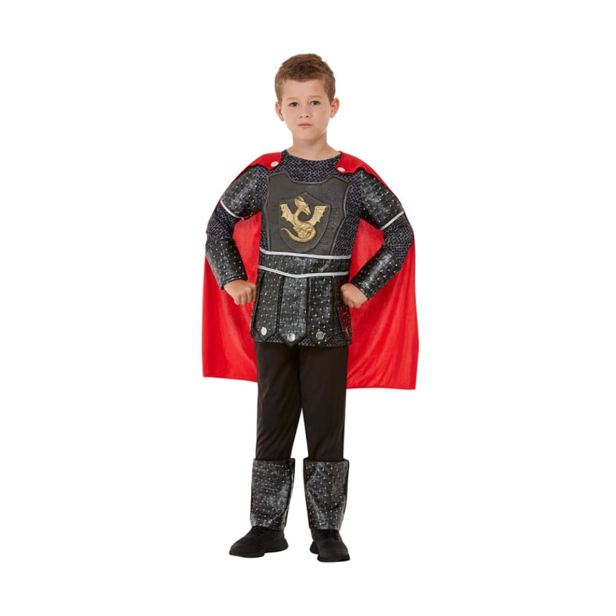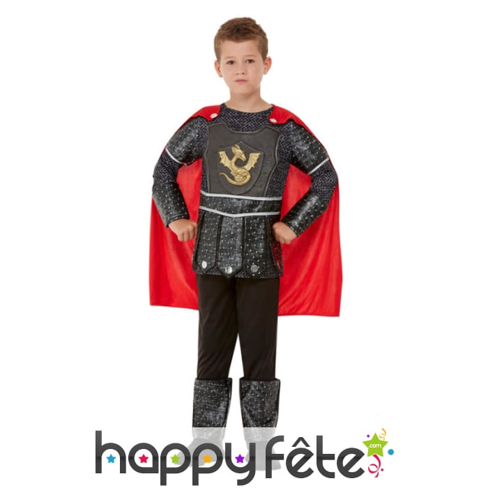Mettez votre garçon sous le feu des projecteurs lors d'une soirée sur le thème de l'action et de l'aventure, avec le costume de petit chevalier noir avec cape rouge.